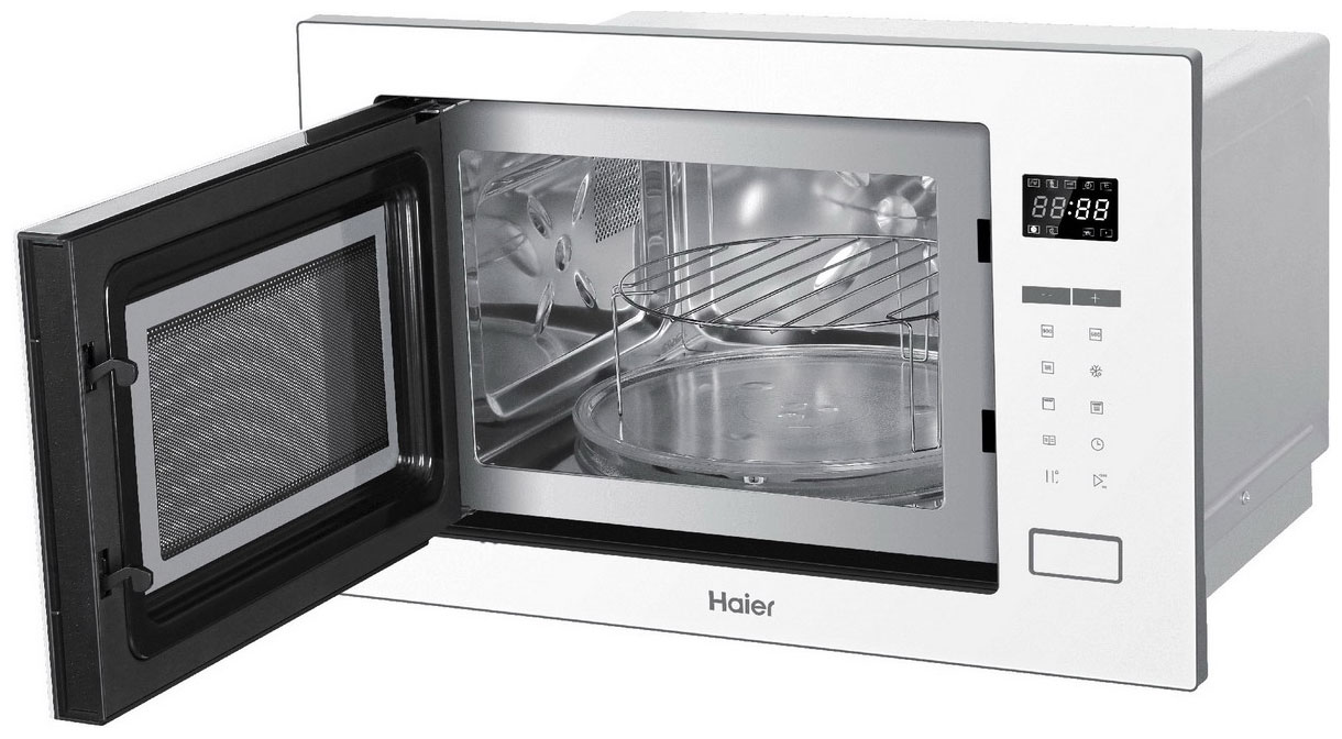Встраиваемая микроволновая печь Haier HMX-BTG259W оснащена кварцевым грилем, благодаря которому приготавливаемое мясо или птица покроется равномерной хрустящей корочкой. Кроме того, эта кухонная ассистентка справится с быстрым разогревом блюд и разморозкой различных продуктов. Для доступа к параметрам воспользуйтесь сенсорной панелью управления.